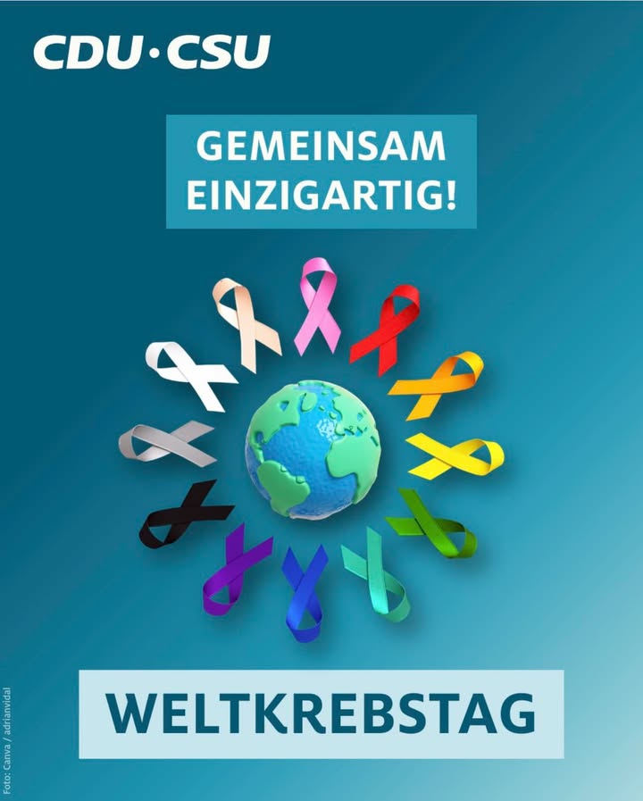 Heute ist Weltkrebstag. Der internationale Aktionstag steht in diesem Jahr unter dem Motto "Gemeinsam einzigartig". Krebspatientinnen und -patienten sind zwar durch ihre Diagnose miteinander verbunden, doch jede Erkrankung und jede persönliche Geschichte ist individuell.In Deutschland erhalten jährlich rund 520.000 Menschen eine Krebsneudiagnose. Gleichzeitig geben positive Entwicklungen Anlass zur Hoffnung. Heute enden Krebserkrankungen deutlich seltener tödlich als noch vor einigen Jahren. Dazu tragen vor allem medizinische Fortschritte sowie Maßnahmen zur Prävention und zur frühen Erkennung bei.Am heutigen Weltkrebstag wird daher auf die Bedeutung von Prävention, Früherkennung und Behandlung von Krebserkrankungen aufmerksam gemacht. Viele Menschen tragen verschiedenfarbige Krebsschleifen, um Solidarität mit Betroffenen zu zeigen und das Bewusstsein für die unterschiedlichen Krebsarten zu stärken. Die Farben der Schleifen stehen dabei jeweils für verschiedene Erkrankungen.Weitere Informationen finden Sie unterhttps://www.krebshilfe.de