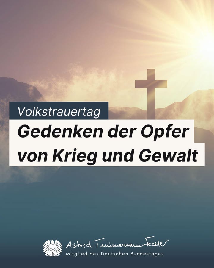 Am heutigen Volkstrauertag gedenken wir der Opfer von Krieg und Gewaltherrschaft und erinnern an das Leid, das unzählige Menschen erfahren haben. Dieser Tag ist nicht nur ein Anlass des stillen Gedenkens sondern auch eine Mahnung zu Versöhnung, Verständigung und Frieden. Angesichts der gegenwärtigen Kriege und anhaltenden Konflikte hat der Volkstrauertag leider nichts von seiner Aktualität verloren. Er führt uns vor Augen, wie wichtig es ist, entschlossen für Frieden, Menschlichkeit und demokratischen Zusammenhalt einzutreten.